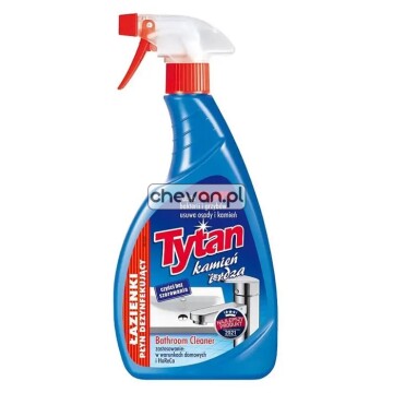 Płyn do mycia łazienek Tytan kamień i rdza skutecznie usuwa osady z kamienia, rdzy, mydła, zacieki wodne, tłuste plamy i inny brud. Przeznaczony jest do mycia powierzchni z chromu, stali nierdzewnej (zlewozmywaki kuchenne), glazury, umywalki, wanny, szkła